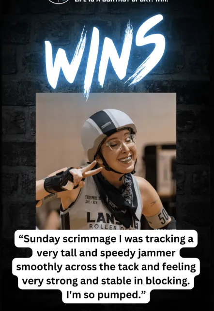 You will have a dedicated coach, regular check ins, weekly group coaching calls, and access to a private community of roller derby athletes.